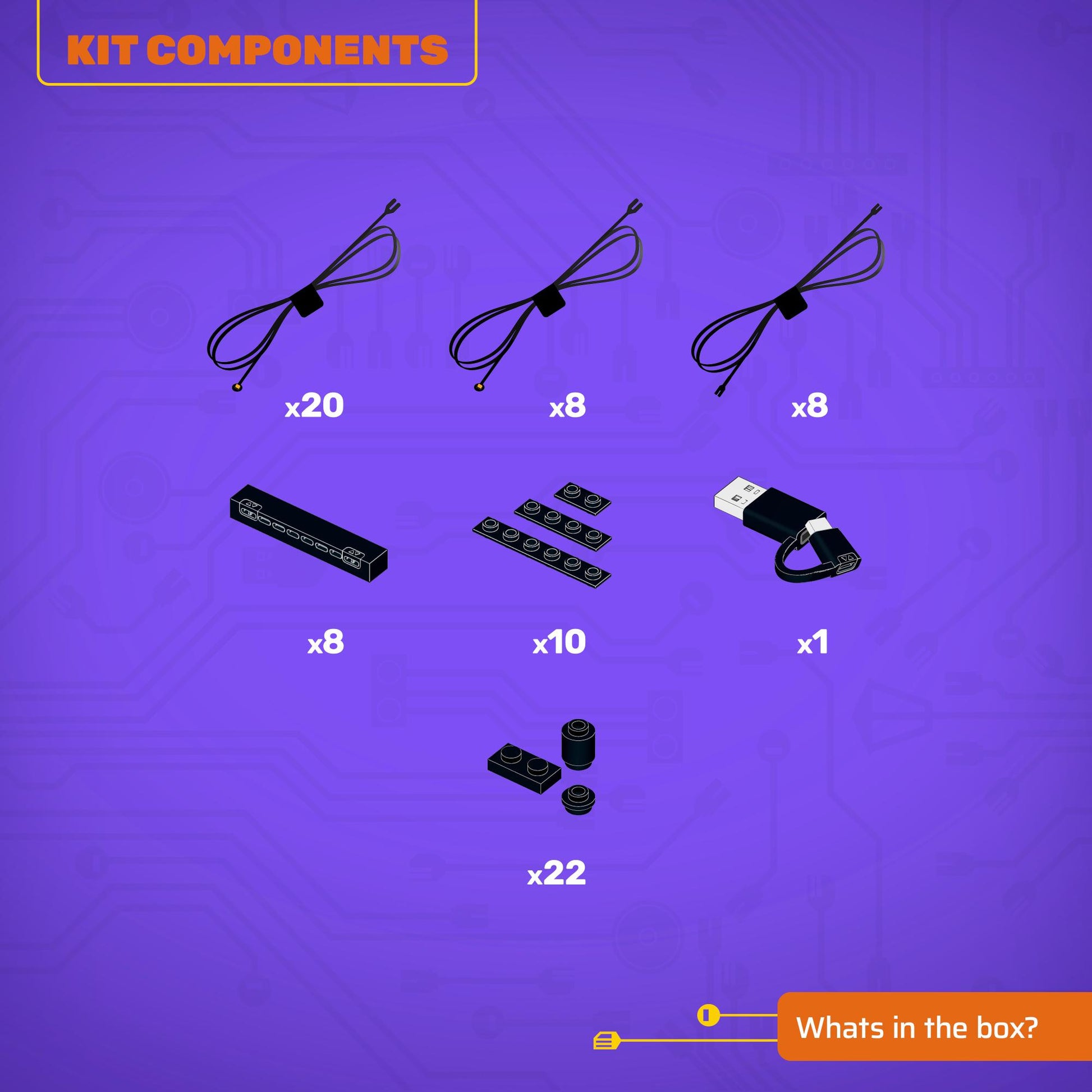 • All component casing and housing has been designed to connect seamlessly onto the LEGO stud system, with LEGO dimensional parts.