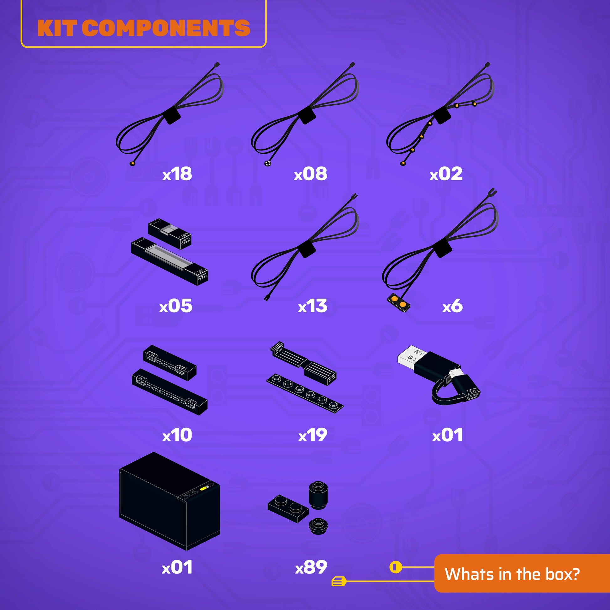 • All component casing and housing has been designed to connect seamlessly onto the LEGO stud system, with LEGO dimensional parts.