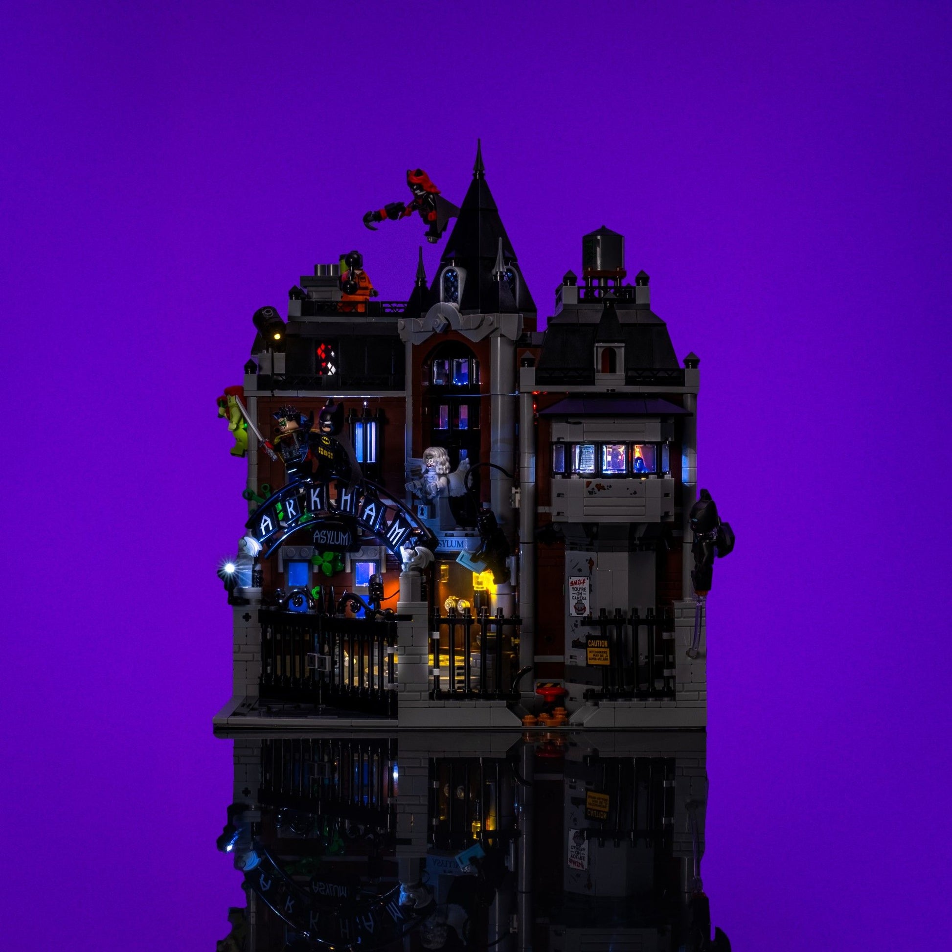 Step into Gotham’s darkest stronghold with an immersive Light My Bricks™ Light Kit for the LEGO® Batman™: Arkham Asylum™ 76300, designed to capture the eerie, atmospheric feel of the comics and Arkham game series. From the flickering, broken spotlight at the front gate to the ominous glow of the asylum’s gothic façade, every detail sets the stage for chaos within. Inside, cell blocks and maximum-security wings glow with cold white lights, red warning beacons, and even Poison Ivy’s glowing green plants, while the therapy rooms and guard tower add unsettling flashes of danger and dread. With Flux Touch Plates for full playability, eerie rooftop lighting, and a fully equipped ambulance complete with rotating light bar effects, this kit transforms Arkham Asylum into a chilling centerpiece worthy of the Dark Knight.