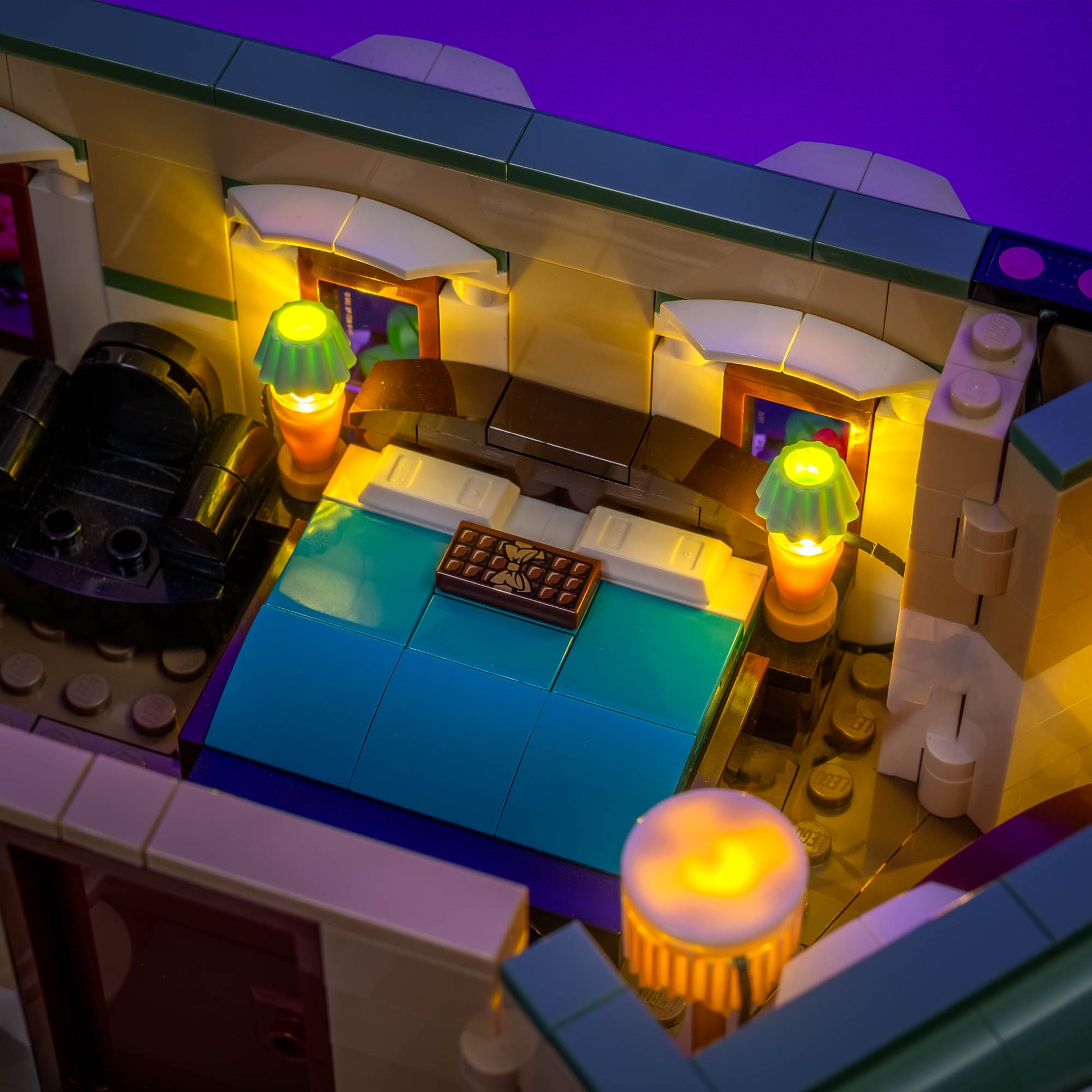 This light kit is bursting with details, with 24 lights all carefully designed to exude a warm and cosy atmosphere across all 3 levels of the hotel. Each level is wirelessly connected, so you can easily separate the levels to see the interior details and maintain all playability. Are you ready for the ultimate building experience with Light My Bricks™?