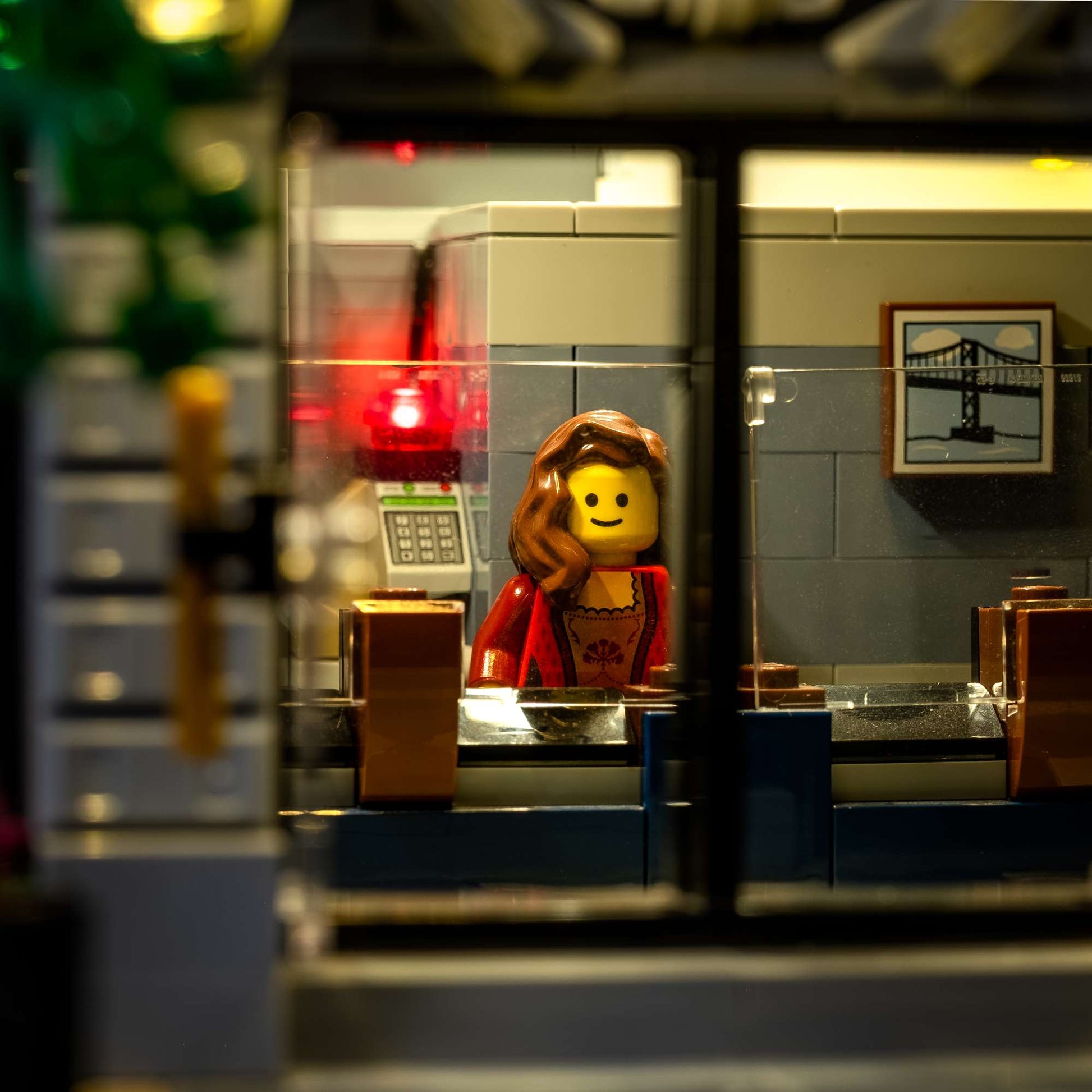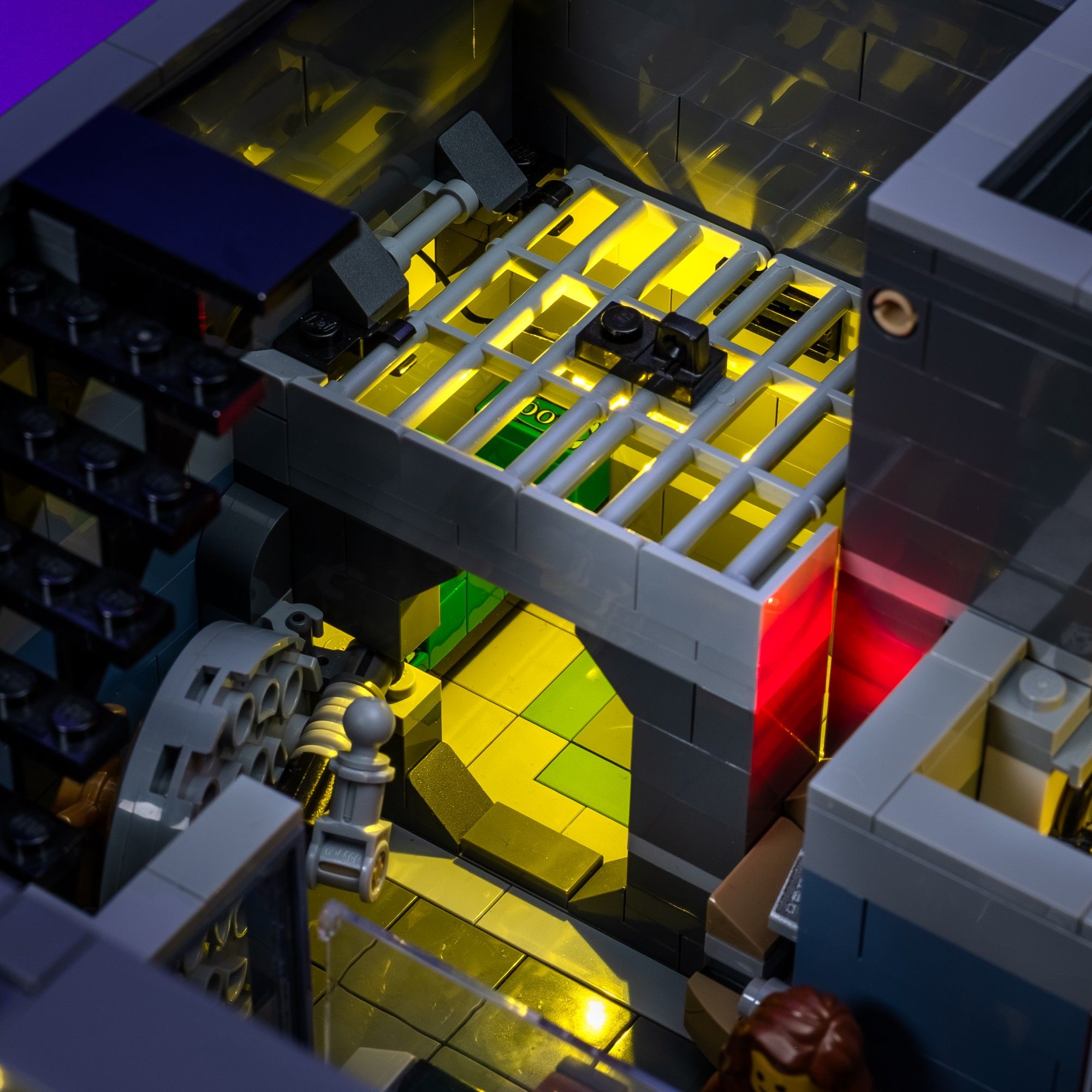 Add timeless elegance to your modular street with a custom Light My Bricks™ Light Kit for the LEGO® Creator Expert Brick Bank 10251. Warm white lamp posts and glowing lanterns illuminate the exterior, while cool interior lighting showcases every architectural detail inside. The chandelier in the grand foyer sparkles to life with micro string LEDs, while flickering lights in the fireplace and desk lamps add warmth and realism to the offices above. With flashing lights connecting the laundromat and the bank for storytelling flair, and Flux Touch Plates allowing for easy level removal, this kit transforms the Brick Bank into a radiant centrepiece of your LEGO® city.