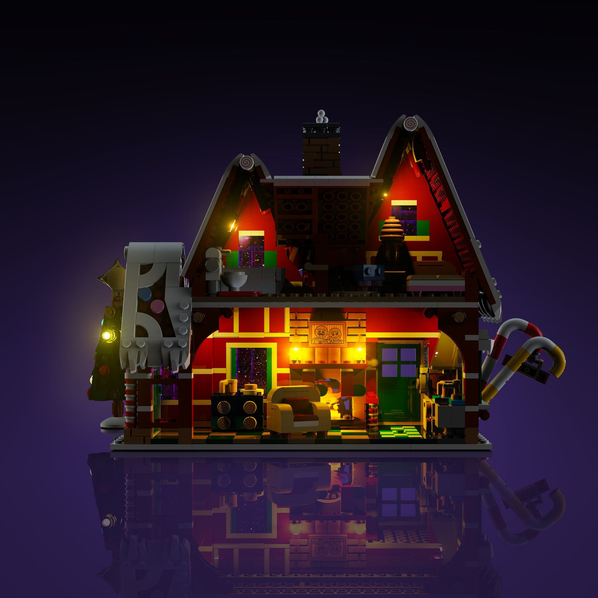 Bring your LEGO® Gingerbread House to life with our charming light kit, designed to enhance every sugary detail of this festive favourite set. The flickering orange light in the fireplace sets a cosy scene, while the two glowing candles on the hearth add extra warmth. Outside, the welcoming lanterns at the front door sparkle in warm white light, inviting all gingerbread guests inside! Inside, micro meteor lights brighten both levels of the house, highlighting the playful interior. And we didn't forget the Christmas tree! Decked with a string of multi-colour lights, it twinkles with festive cheer, adding the perfect finishing touch.