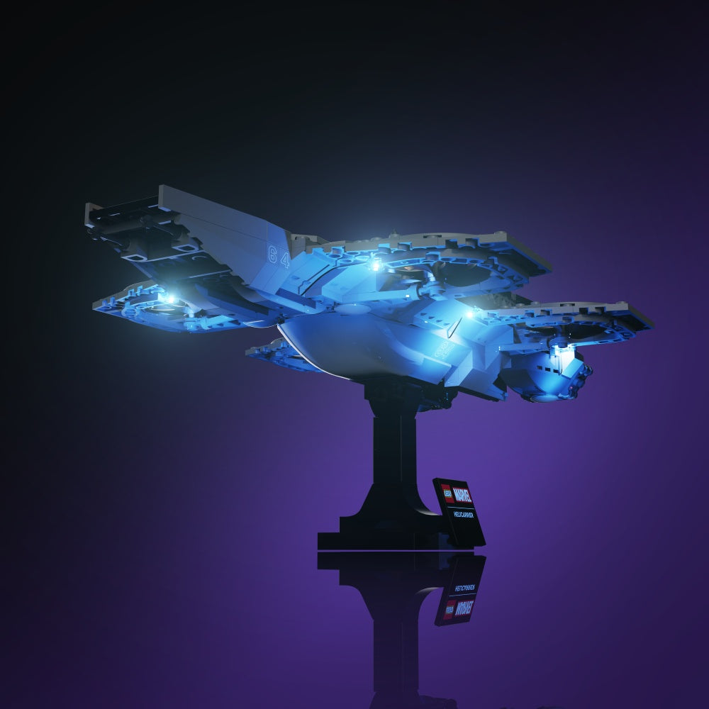 The Avengers Helicarrier is masterfully lit up with 11 custom lights, all designed to highlight the movie-accurate details of the aircraft. From the bridge, to the runway, engines and retro-reflective panels, no feature has been forgotten in this set that Marvel enthusiasts will undoubtedly love.
