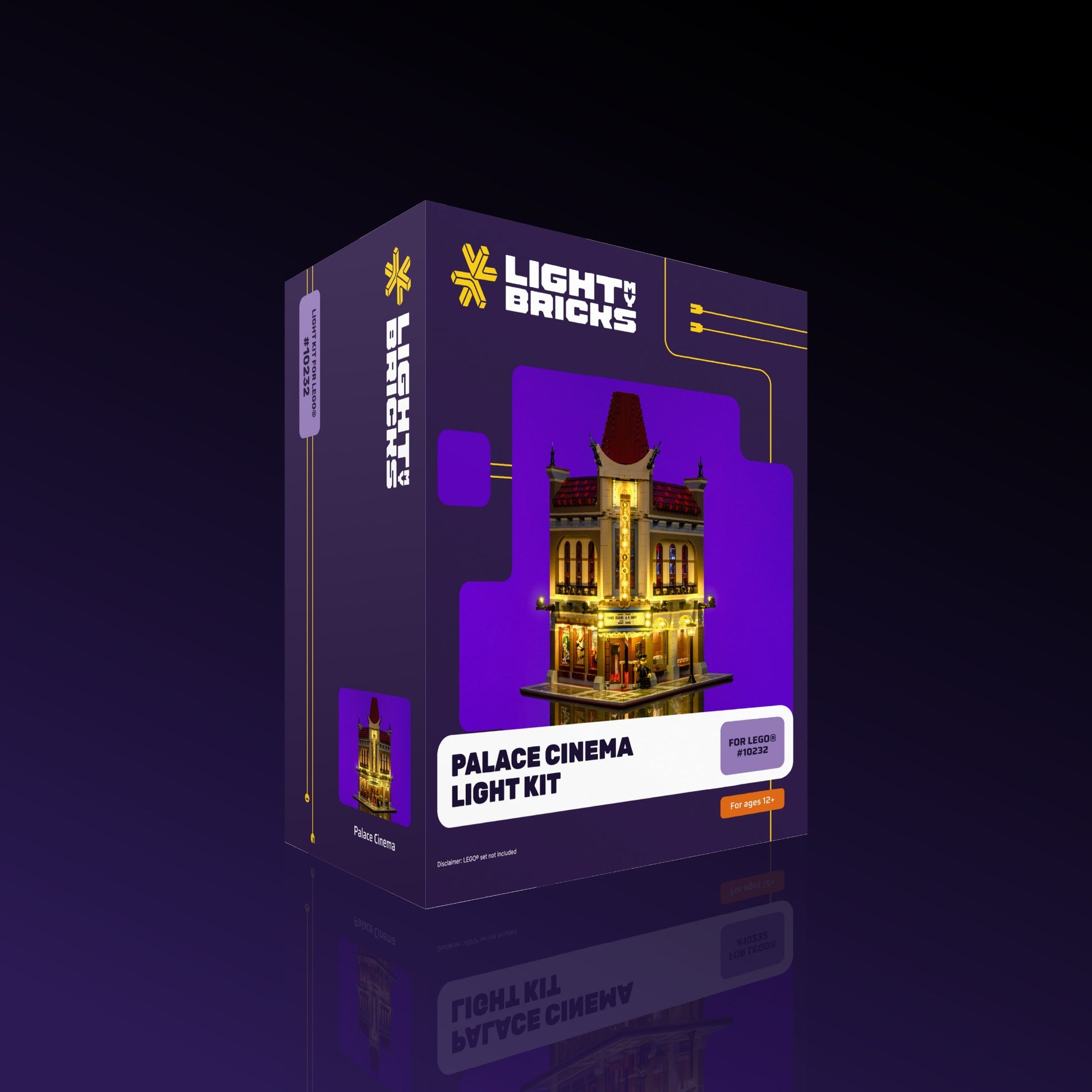 Roll out the red carpet with a cinematic Light My Bricks™ Light Kit for the LEGO® Creator Expert Palace Cinema 10232, designed to capture the glamour of a classic movie premiere. Rotating string lights illuminate the grand façade and ticket booths, while warm white LEDs highlight the billboard, posters, and exterior accents in dazzling detail. Inside, the lobby glows with elegant wall sconces, and the theatre comes alive with a pulsing projector light and a cool white spotlight on the big screen. With 44 individual LEDs and Flux Touch Plates for easy level removal, this kit transforms the Palace Cinema into a true show-stopping centrepiece for your modular city.