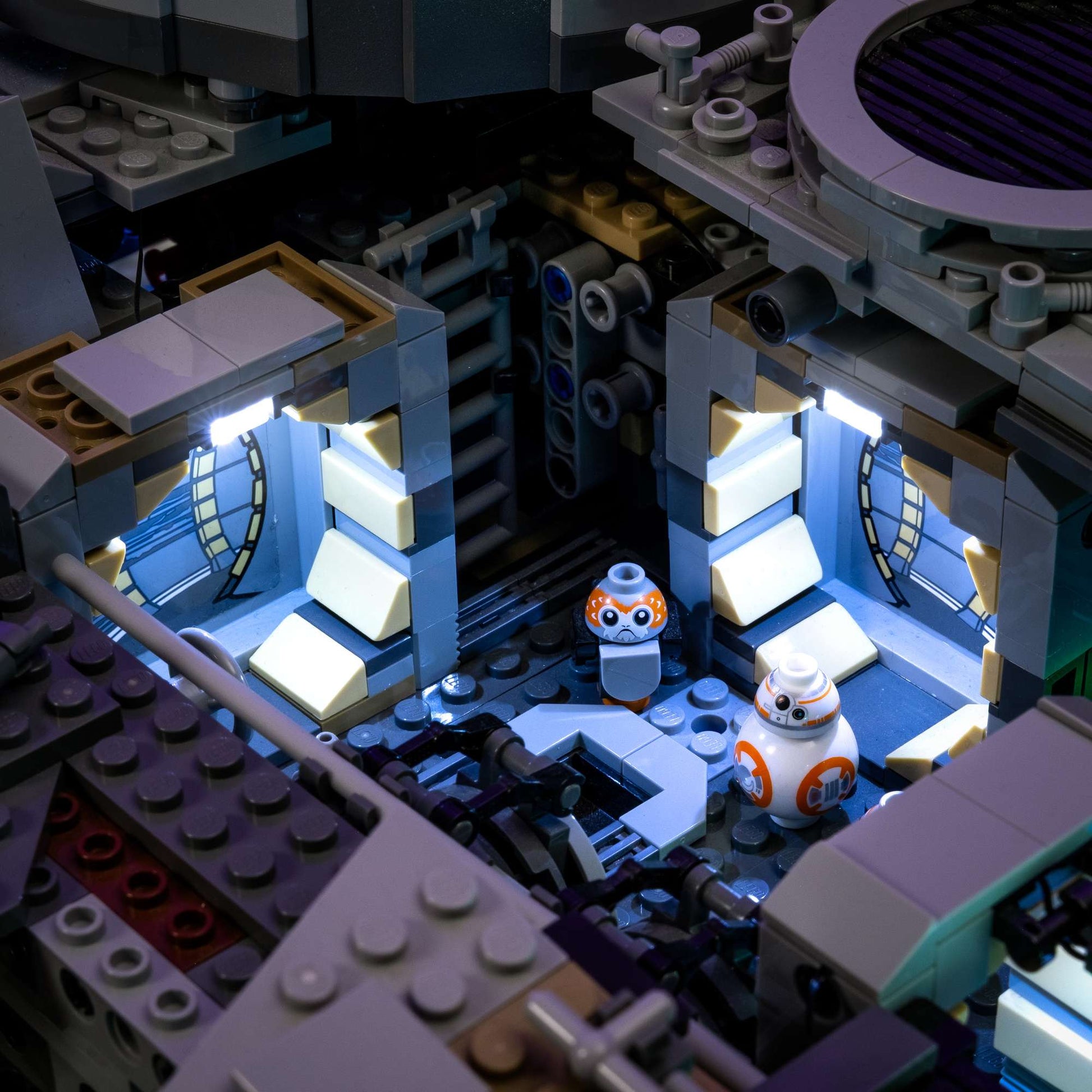 From the gunner stations to the computer consoles and corridors, every space glows with cool white and shifting light, bringing the Millennium Falcon’s story to life.