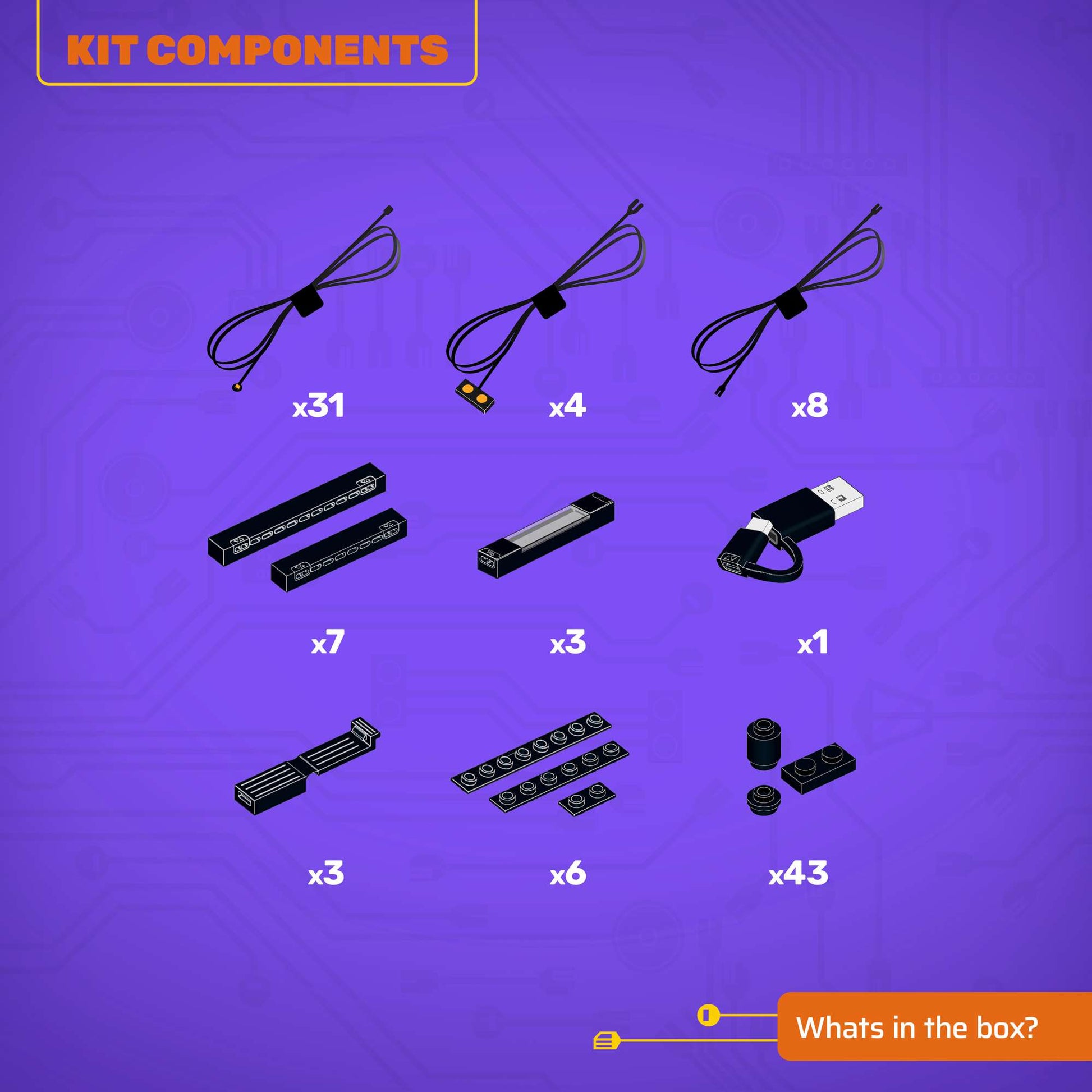 • All component casing and housing has been designed to connect seamlessly onto the LEGO stud system, with LEGO dimensional parts.