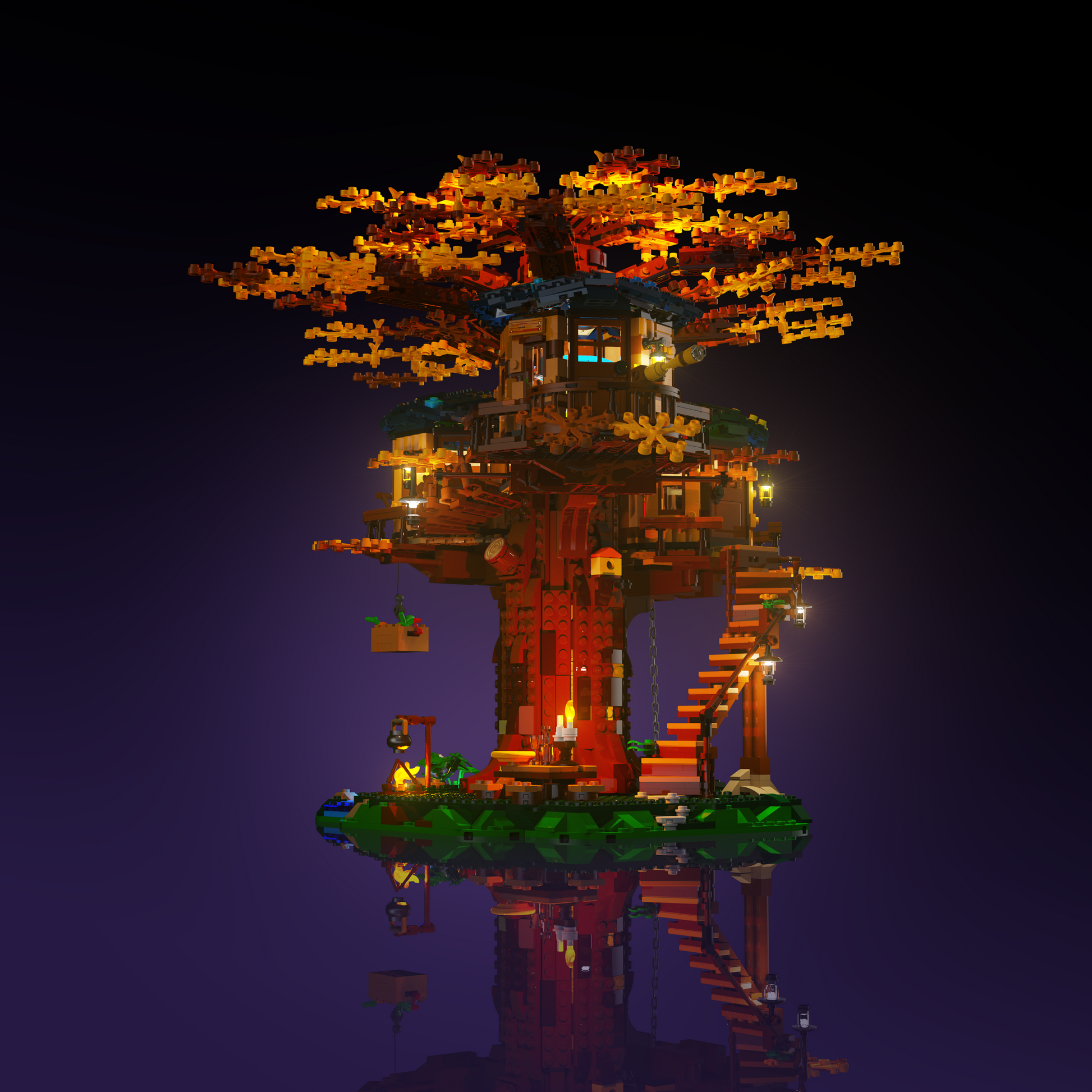 Designed to enhance and illuminate every detail of this intricate LEGO® Tree House set, you can create a tranquil outdoor river setting with warm blue lighting and cosy flickering lights in the campfire and candlelit table. Lanterns scattered across the treehouse cast a warm, enchanting glow through the branches and interior. Get creative with customisable leaf lighting to highlight either autumn yellows or bright spring greens. Blending artistry and functionality seamlessly, this Light My Bricks™ kit transforms your build into a stunning display and is perfect for collectors and enthusiasts alike.