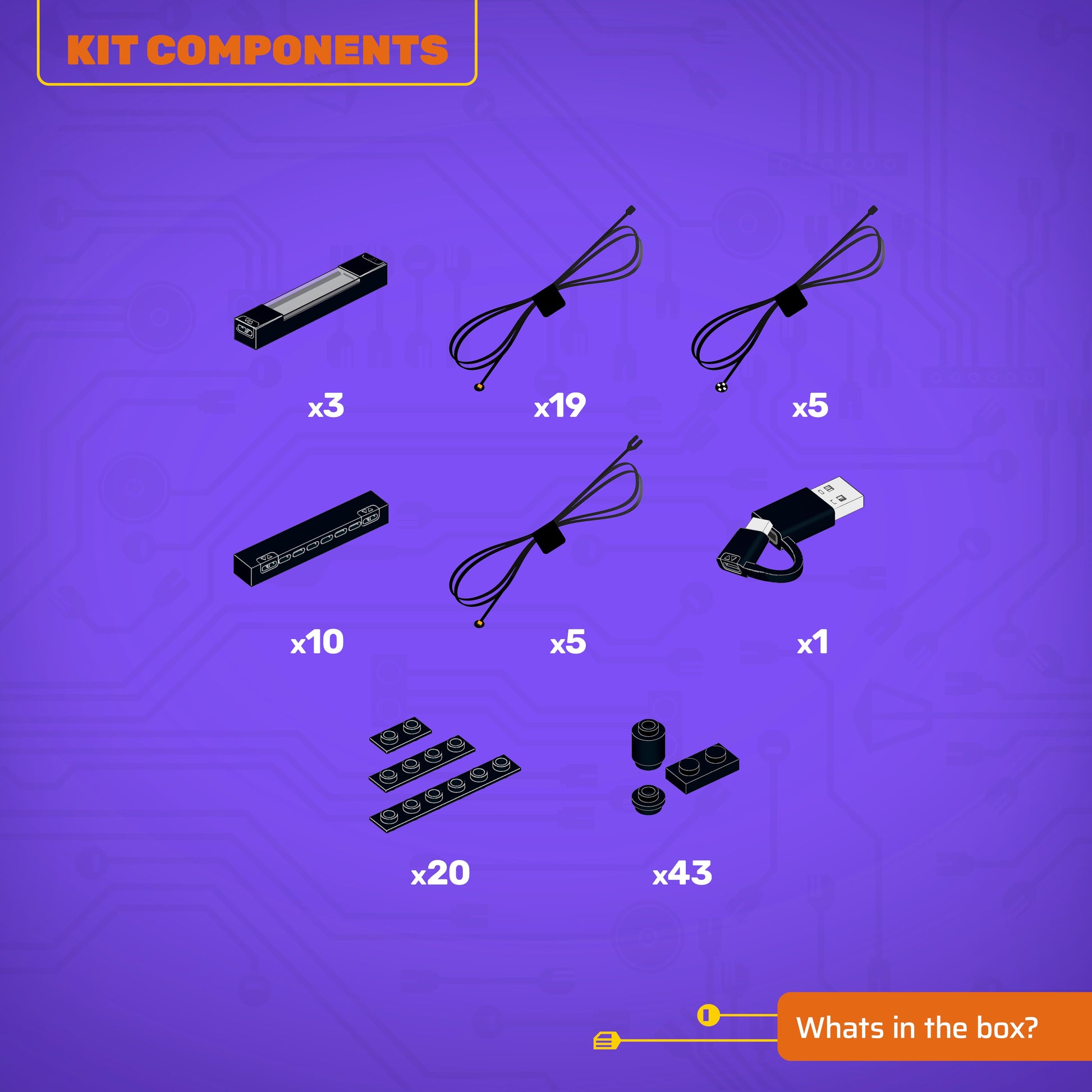 • All component casing and housing has been designed to connect seamlessly onto the LEGO stud system, with LEGO dimensional parts.