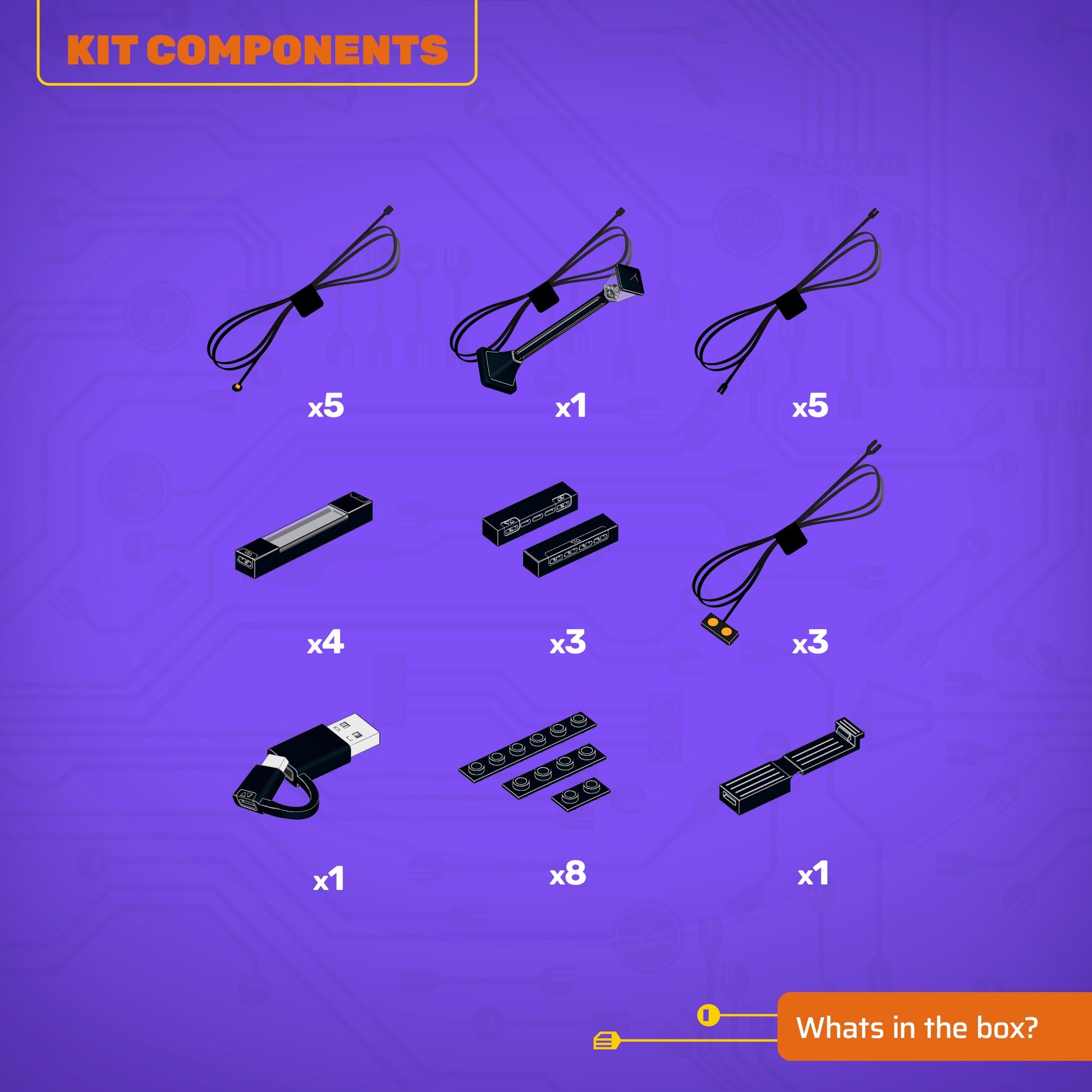 • All component casing and housing has been designed to connect seamlessly onto the LEGO stud system, with LEGO dimensional parts.