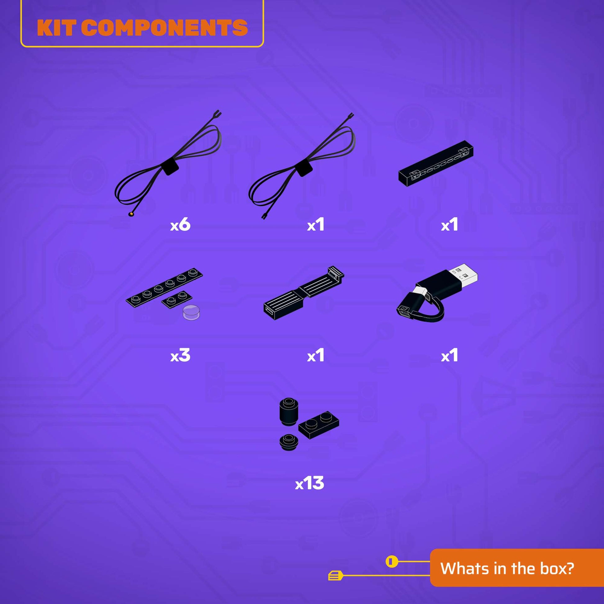 • All component casing and housing has been designed to connect seamlessly onto the LEGO stud system, with LEGO dimensional parts.