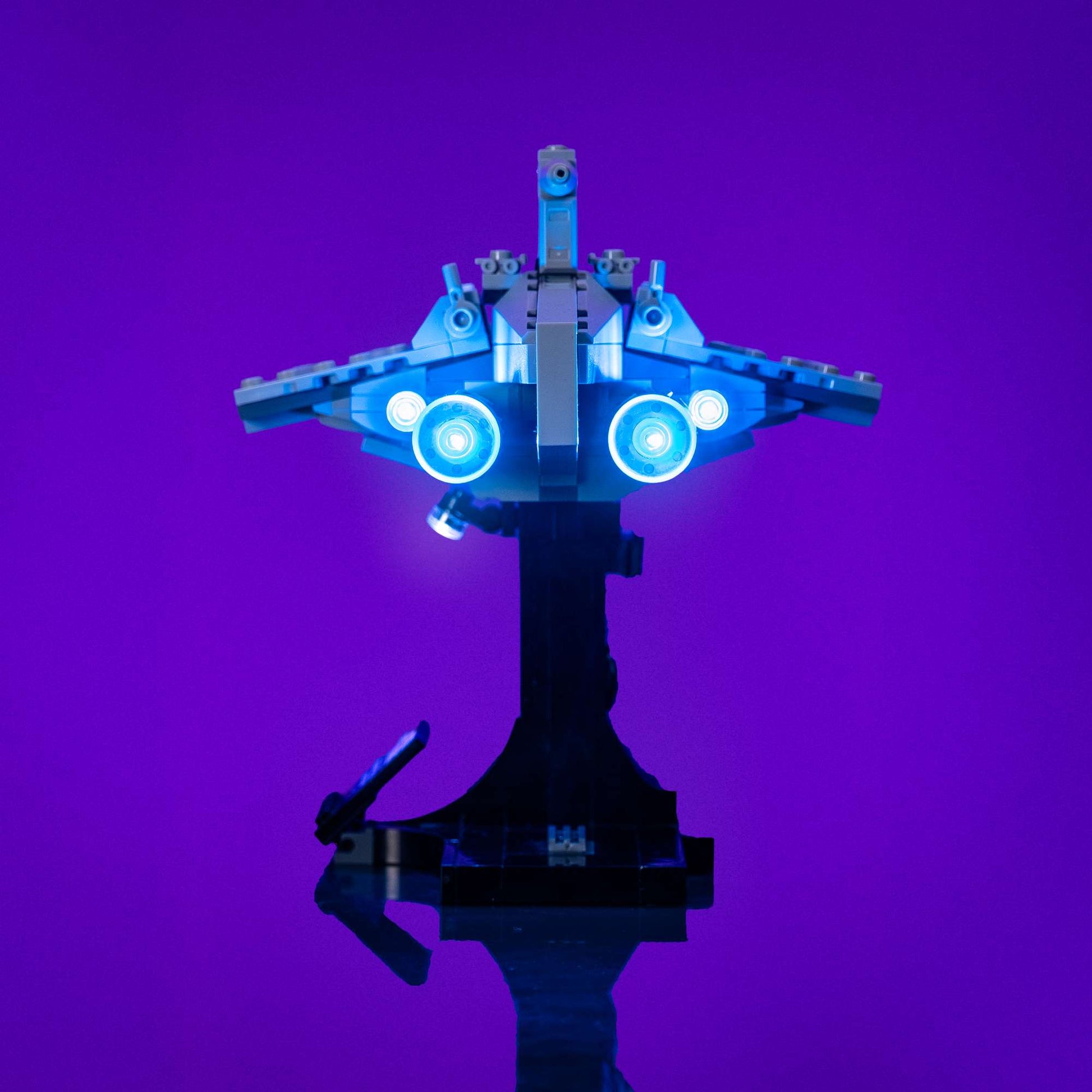 Our lighting kits are designed for easy installation with a step-by-step guide for seamless integration into your build and enhancing its detailed design. The light blue LED’s provide a striking, cool-toned glow that adds intensity to the ship’s rear boosters, while the cool white lights create a dyamic contrast for the cockpit. As a stand-alone build or as part of your collection, Light My Bricks™ lighting will capture the eye and imagination of every Star Wars™ enthusiast.