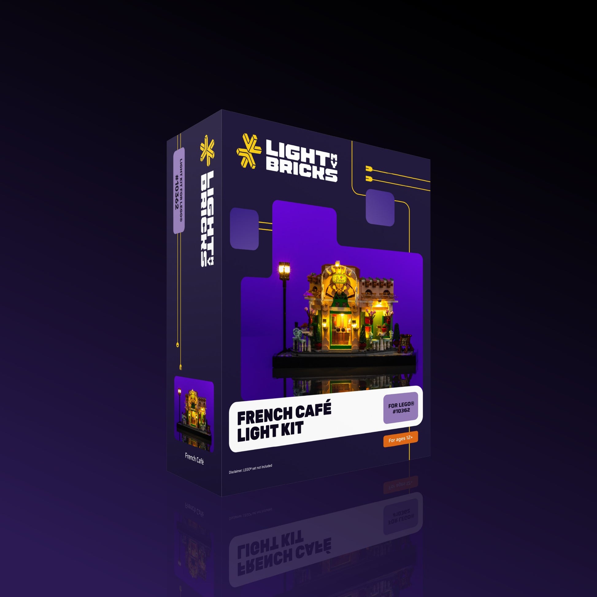 Show off your true Parisian style with our LEGO® French Café lighting kit, curated by the Light My Bricks™ team. Designed to create a warm and welcoming ambience, the kit features Micro Astro warm white lights for the street lamp and door lanterns, plus a flickering candlelight inside to add life and vibrancy. Spotlight-style lighting on the Café Fleur sign and outdoor seating area bring charm and realism to the scene. Perfect for showcasing your modular set with a real-life atmosphere, this kit transforms your build into a cosy, evening street-side café scene.