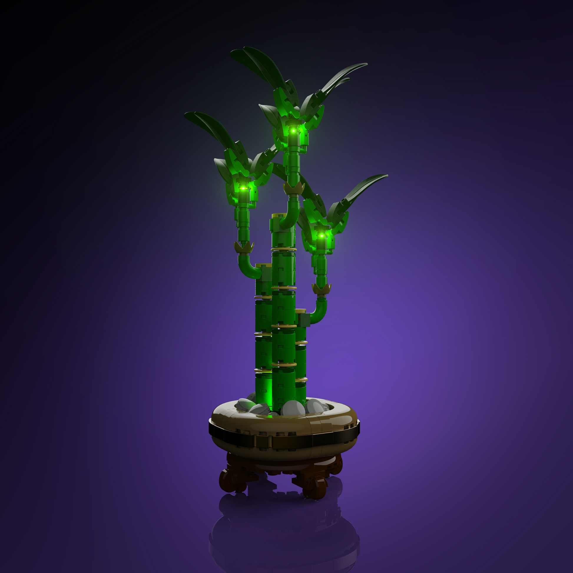 Showcase your Lucky Bamboo build with Light My Bricks™ custom-designed lighting kit. Thoughtfully crafted to match the other sets in the "Four Gentlemen" series, this kit uses light green Astro LEDs to highlight every aspect of the bamboo stems and tips. Creating a peaceful and glowing display, the subtle lights gently illuminate the tips of the taller stems and brighten the shorter stems, and a light in the base brings the entire plant to life with a soft glow.