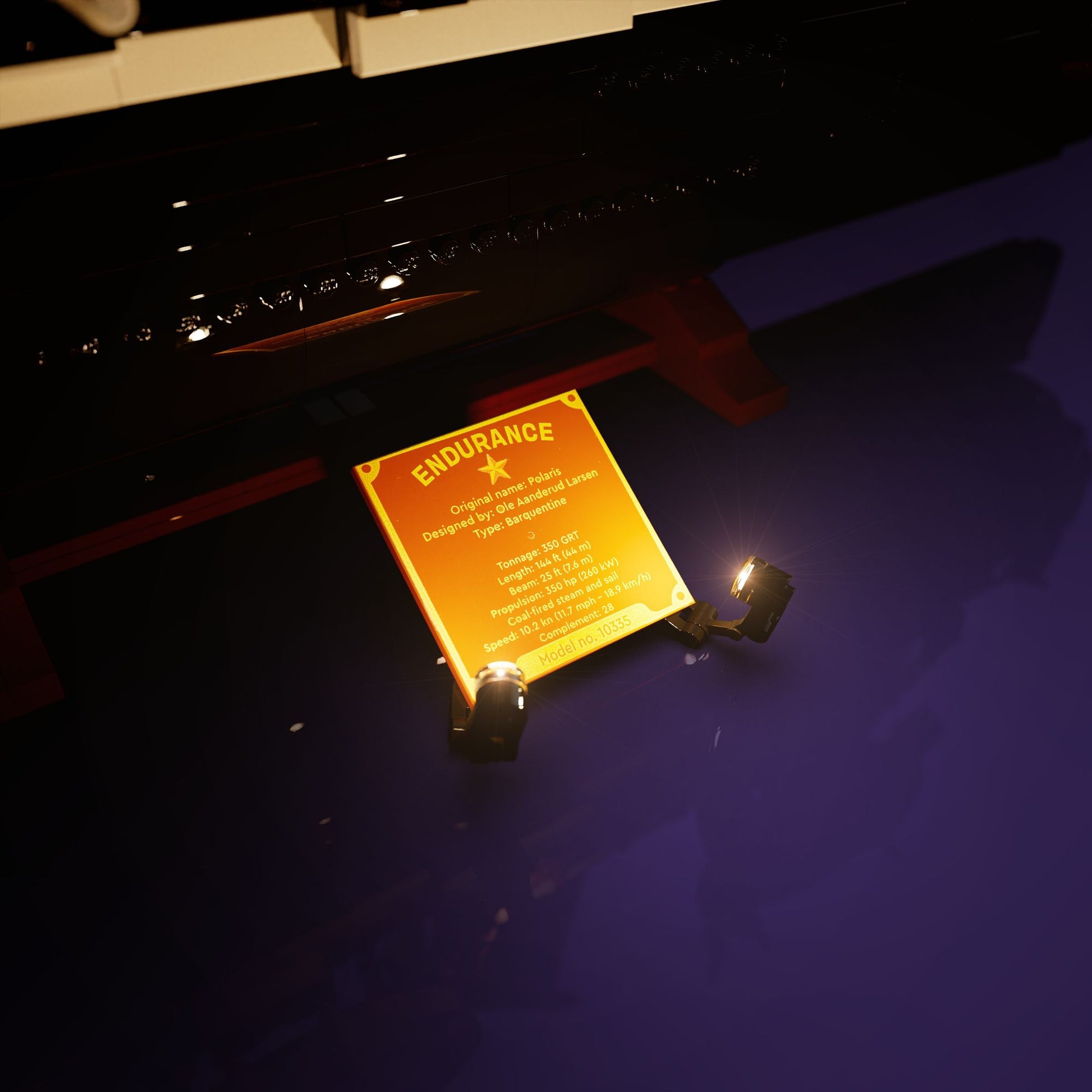 This premium Light My Bricks™ Light Up Kit is the perfect accessory to take your Endurance Ship set to the next level. Elevate your model by adding both dramatic and subtle lighting effects that highlight the finest details. The front plaque of the ship is illuminated with two large warm white Astro lights, creating a soft, welcoming glow. As you move around the ship, you'll notice seven additional warm white lights placed strategically along the bow, midship, and stern. This casts an upward light that enhances the sails and rigging while creating impressive shadow play for a more dynamic visual experience.